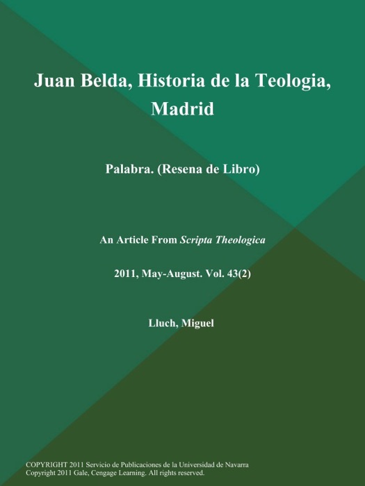 - Title: Juan Belda, Historia de la Teologia, Madrid: Palabra (Resena de Libro)